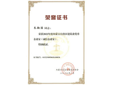 • 建筑業優秀企業家(朱翔浩)